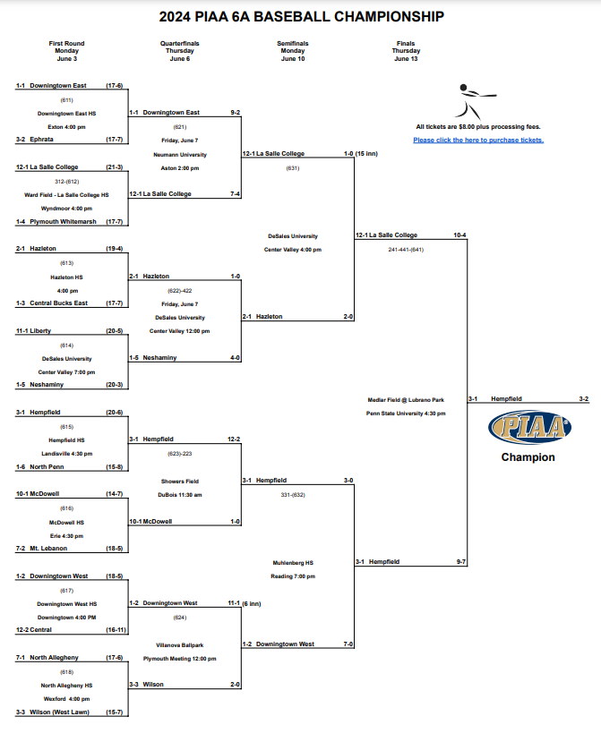 With the win, Hempfield is 24-6 on the season and 12-3 in Section One play and ends the season as the 2024 Section One Champions, District Three 6A Champions, and PIAA 6A Champions. It is the 871st win for the Hempfield Baseball Program.